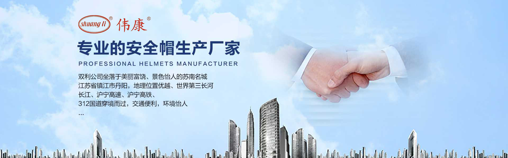 專業(yè)的安全帽生產(chǎn)廠家-鎮(zhèn)江市雙利勞保用品有限公司。雙利公司坐落于美麗富饒、景色怡人的蘇南名城——江蘇省鎮(zhèn)江市丹陽,地理位置優(yōu)越、世界第三長河——長江、滬寧高速、滬寧高鐵、312國道穿境而過,交通便利,環(huán)境怡人。鎮(zhèn)江市雙利勞保用品有限公司是鎮(zhèn)江市第一家創(chuàng)辦的專業(yè)生產(chǎn)安全帽的生產(chǎn)商,并申請擁有自己的品牌:shuangli牌和偉康牌,立足致力于安全帽研究,從原料入手研發(fā)出韌性更強、抗沖力更高的特點。公司根據(jù)實際運行需要建立高效、務實、有序的組織機構,實現(xiàn)現(xiàn)代化公司管理。同時公司具備專業(yè)完善的生產(chǎn)設備和成熟的安全帽生產(chǎn)工藝及先進的檢測儀器,為產(chǎn)品的質量奠定了堅實的基礎,各項技術指標均達到國家《GB2811-2019》《安全帽》標準。產(chǎn)品廣泛適用于建筑、林業(yè)、石油、石化、造船、港口、冶金等行業(yè)。 “安全、舒適、時尚”是我們的理念與追求,塑造精誠合作的精英團隊,創(chuàng)造科學管理、良好的企業(yè)文化,快樂創(chuàng)業(yè)、快樂工作、快樂生活的企業(yè)氛圍!愿我們攜手共創(chuàng)安全!